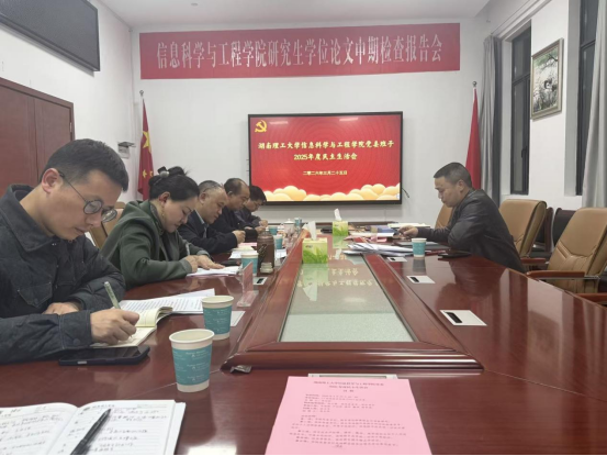 3月25日晚,按照校党委要求,信息学院召开党委领导班子2025年度民主生活会。院党委书记、院长肖迎群主持会议,校党委委员、组织部部长胡文静同志到会指导并作点评讲话,学院领导班子成员参加会议。