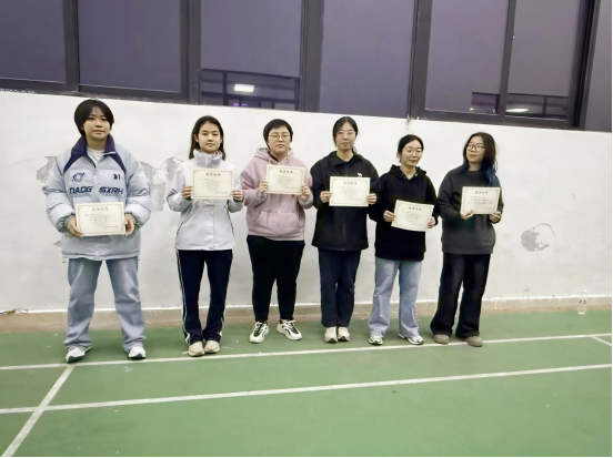 比赛现场,各队伍默契配合、协同作战,发球精准、扣杀凌厉,每一次攻防转换都凝聚团队力量,信息学院队员们彼此鼓劲、全力以赴,在切磋中彰显协作风采。最终信息学院在乒乓球团体赛中,女子组、男子组均斩获第二名。单打赛中,裴思宇、贺馨怡分别荣获女子组第三名、第五名。